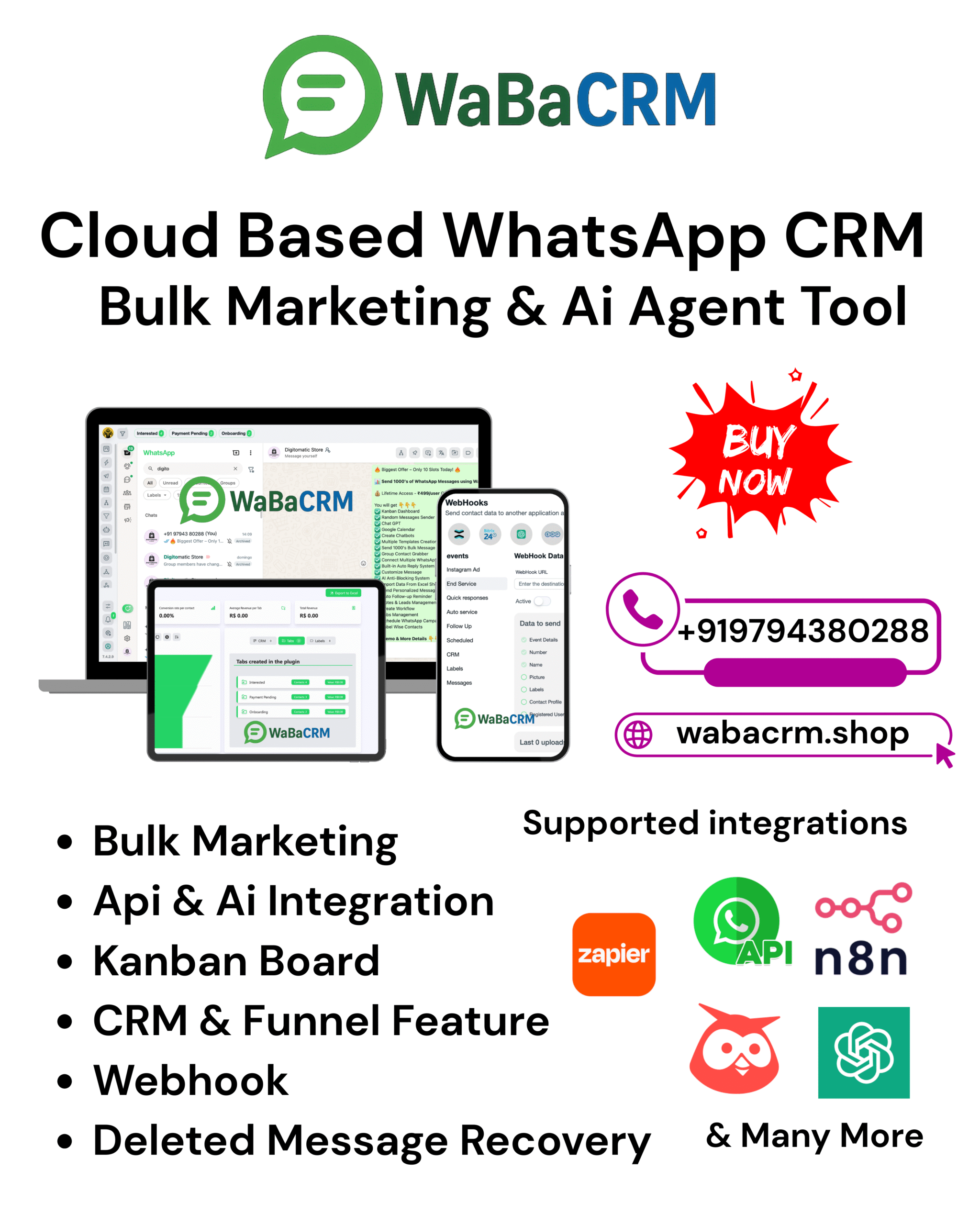 Introducing WabaCRM — a WhatsApp-first CRM with automation, funnels, AI features, and smart tools to scale your outreach effortlessly.